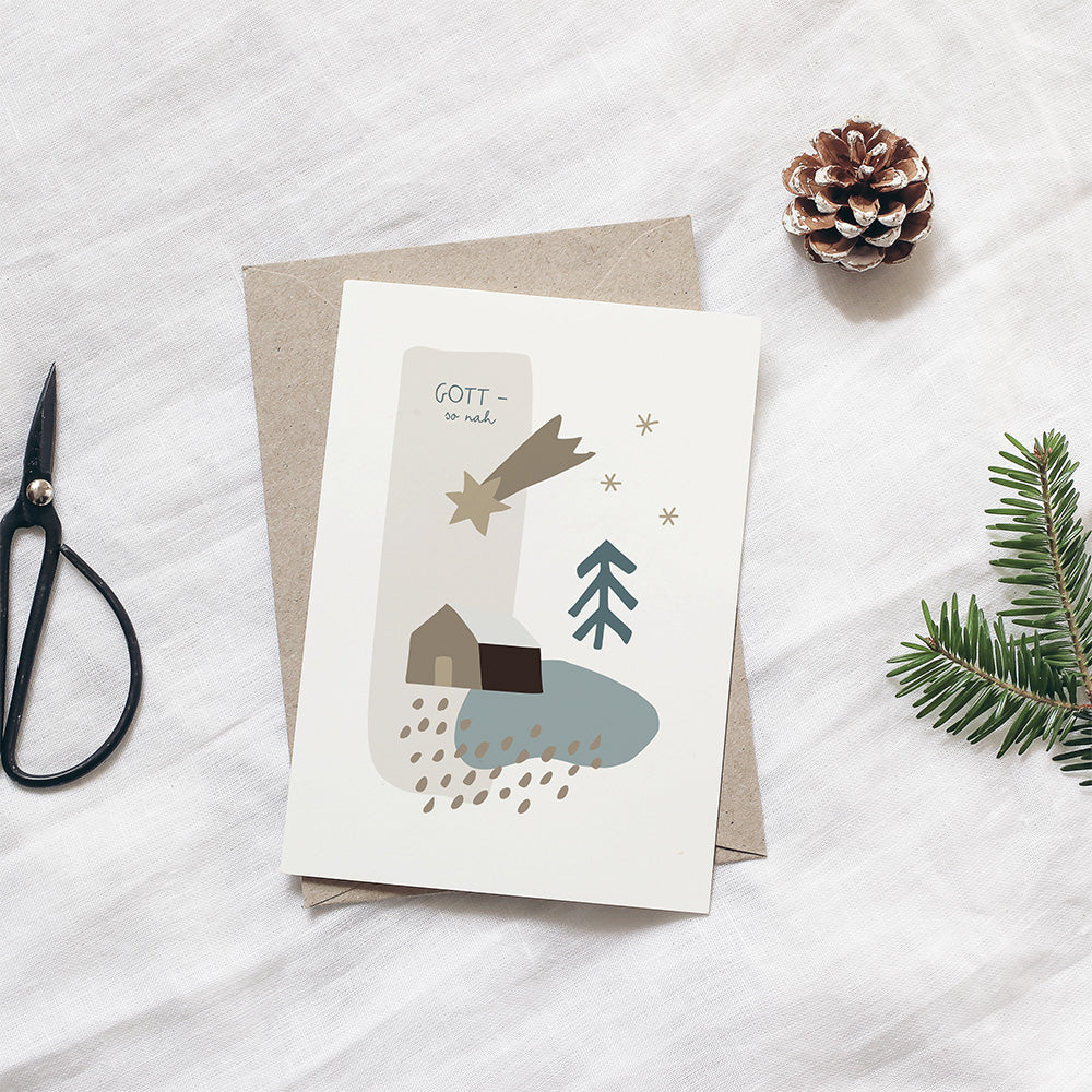 Hochwertiger Druck auf 300g Naturkarton crème.